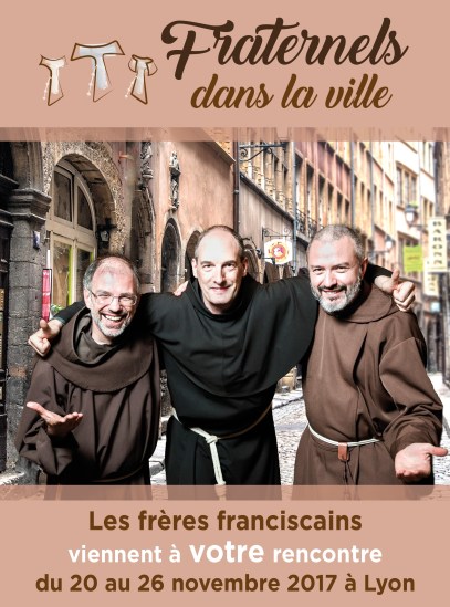 Après fr. Jack et les jeunes de Bruxelles (voir ici), les frères des trois branches masculines de l’ordre des frères mineurs (franciscains, conventuels, capucins) se retrouvent à Lyon du 20 au 26 novembre pour un temps de mission dans les rues de cette ville. Pour quelques jours donc, ils seront les ‘hérauts du grand Roi‘ comme disait Saint François, parcourant Lyon pour annoncer à tous la Bonne Nouvelle !