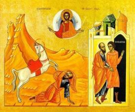 La conversion de Saint Paul évoque ainsi avant tout une rencontre qui détermine un changement de regard. Paul rencontre le Christ sur le chemin de Damas. Dans cette vision, le Christ va se révéler à lui et lui parler. Mais, en même temps, lui, Paul, va être aveuglé pendant quelques jours. A la prière du chrétien Ananie et par le baptême qu‘il va recevoir, Paul va retrouver la vue. Mais il s’agit d’une autre vue, d’une autre vision des choses et de la réalité : le Christ, qu’il percevait auparavant comme ennemi de la religion juive, devient sa vie même, la seule raison de son existence. « Ce n’est plus moi qui vis c’est Christ qui vit en moi… », dira-t-il d’ailleurs (Gal 2,20). Le Christ n’est plus sujet de haine mais d’adoration. Ses voyages enthousiastes n’auront plus pour objet de pourchasser les adeptes du Christ mais d’annoncer celui « qui m’a aimé et s’est livré lui-même pour moi ». Car, dans les yeux de Dieu, sa propre vie est désormais comprise autrement. Ses yeux se ferment au monde et s’ouvrent au Christ.